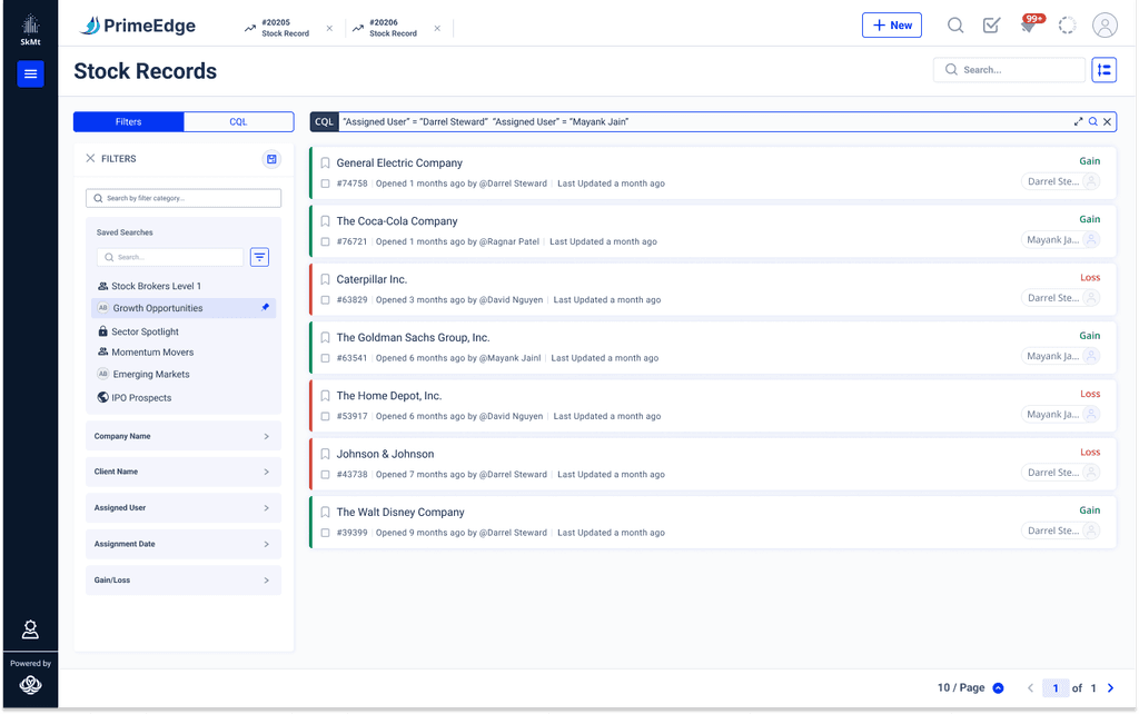 The user has the option to pin a default filter, and they can further refine searches based on their own filters or shared ones.